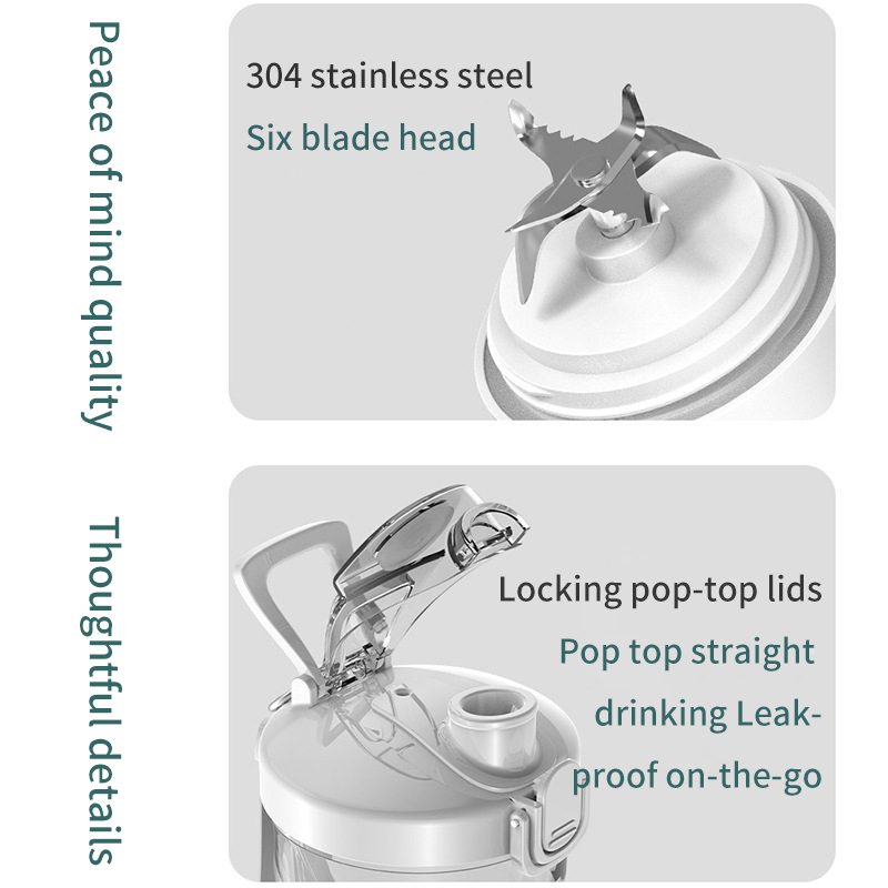 【Portable & Perfect Capacity】With a large capacity of 20 ounces (600ml), this juice mixer has enough space to put fruits, vegetables and ice cubes in it. Screw the extra cup lid, A perfect personal size blender to take with you on trips, sports and barbecues.
